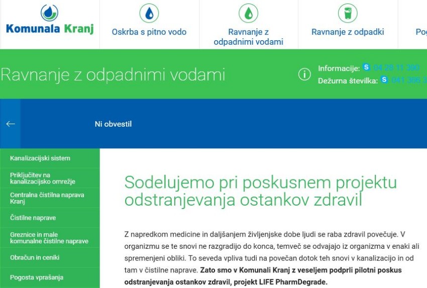 In the frame of the LIFE Water platform meeting we have presented our first results obtained in the frame of the LIFE PharmDegrade project and enlighten the problem of pharmaceuticals in hospital wastewater. The presented poster by Jurij Trontelj with the title »I. Optimization of the LC-MS/MS method for quantification of selected pharmaceuticals in wastewater …